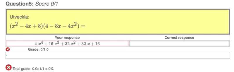 Multiplicera allt i ena parentesen med allt i den andra, och samla ihop termer med samma gradtal. Så hade jag gjort.
