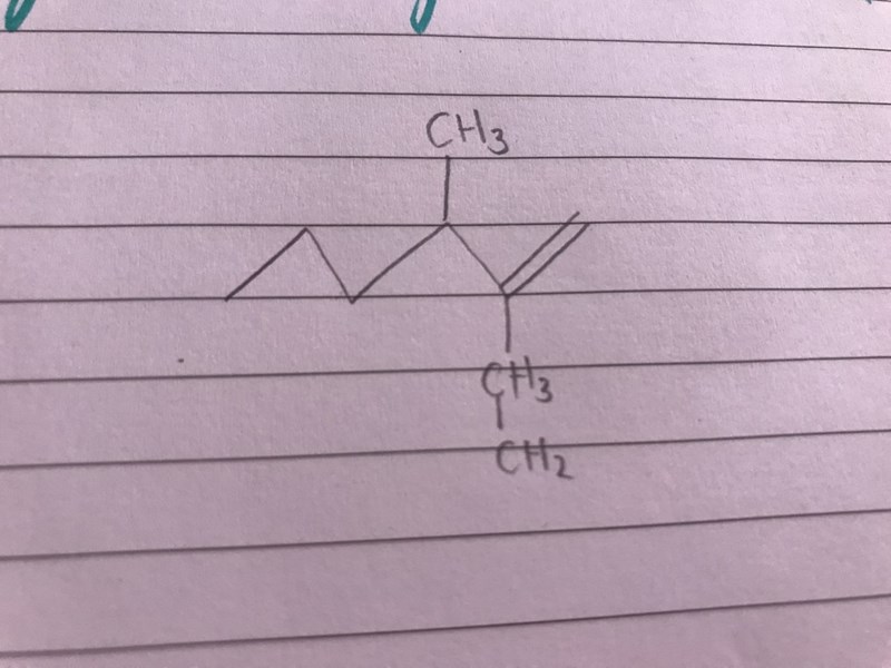Hej! Jag ska rita 2-etyl-3-metyl-1-hexen och tänkte höra om jag har ritat rätt strukturformel för den?