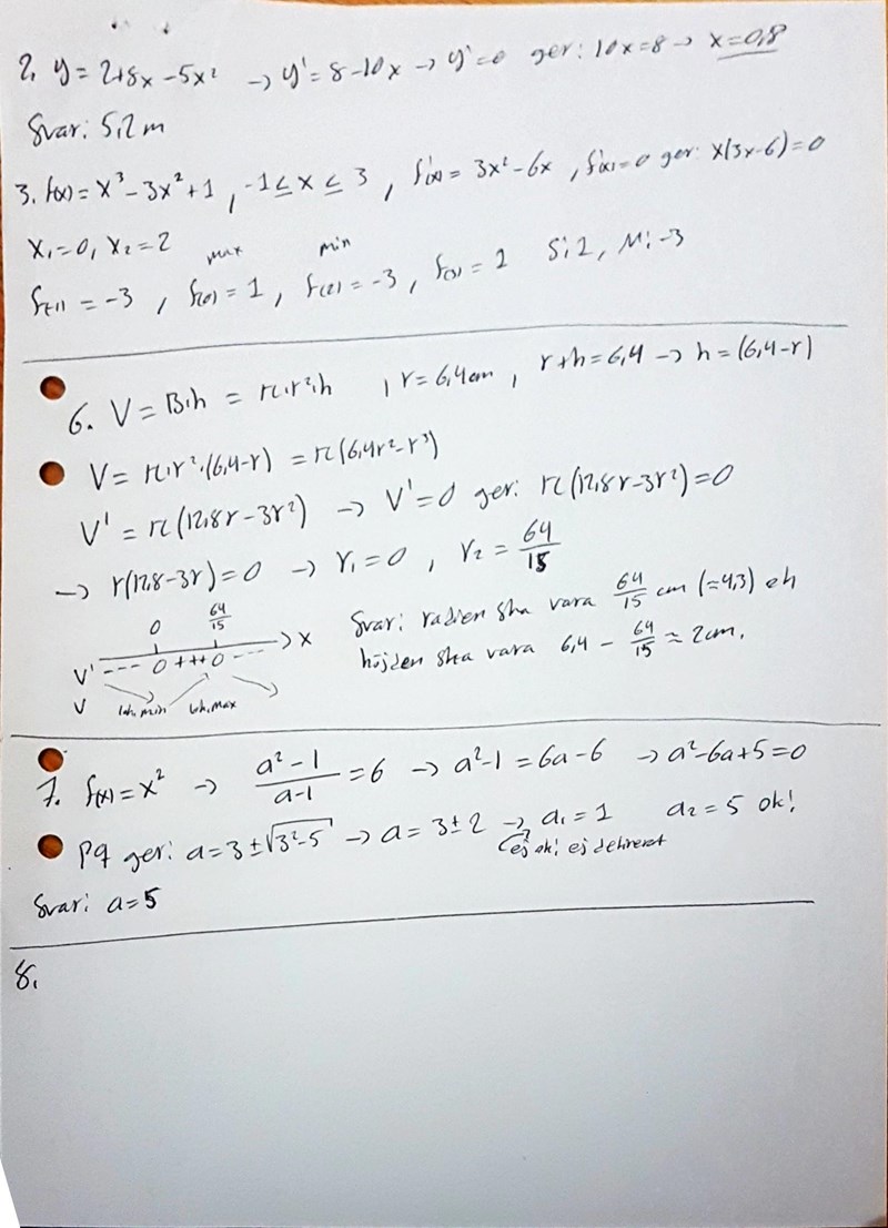 Jag har löst några gamla uppgifter på egen hand, och det känns som att jag har fått rätt svar på alla :) Problemet är att jag inte har facit till hands och undrar därför om någon av er har lite ork att titta igenom mina lösningar och ge återkoppling/bekräfta att jag tänkt rätt (eller fel)? Jag skulle verkligen uppskatta detta, då ett matteprov närmar sig. Tack på förhand!