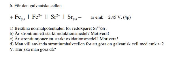 b) Ja, eftersom strontium har en väldigt låg normalpotential är det ett starkt reduktionsmedel.