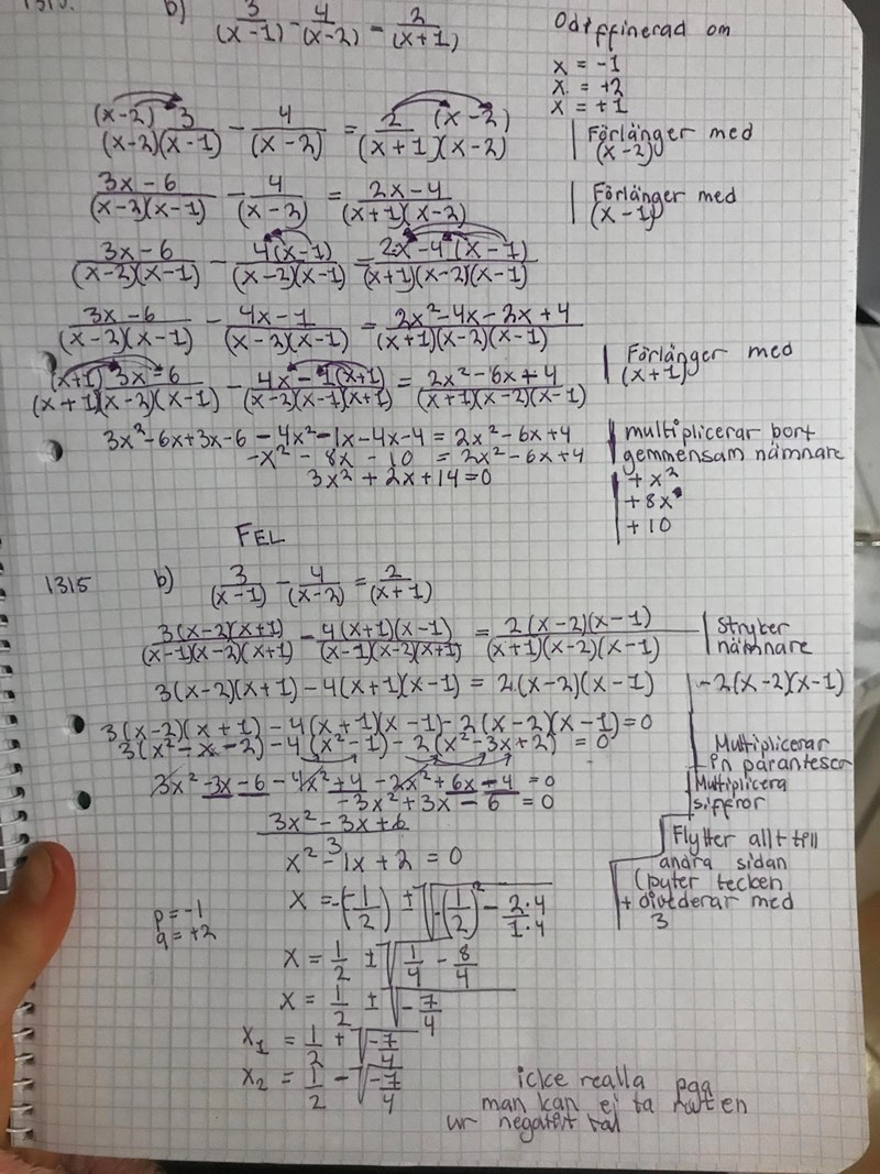 I facit står det att det finns bara icke realla lösningar, men undrar om min utryckning är rätt?