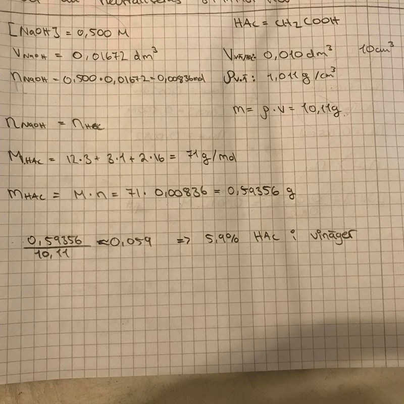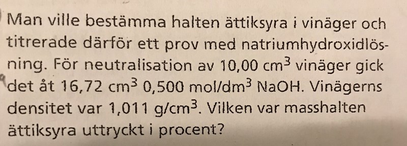 Har jag tänkt rätt? Masshalt ättiksyra i vinäger uttryckt i procent...