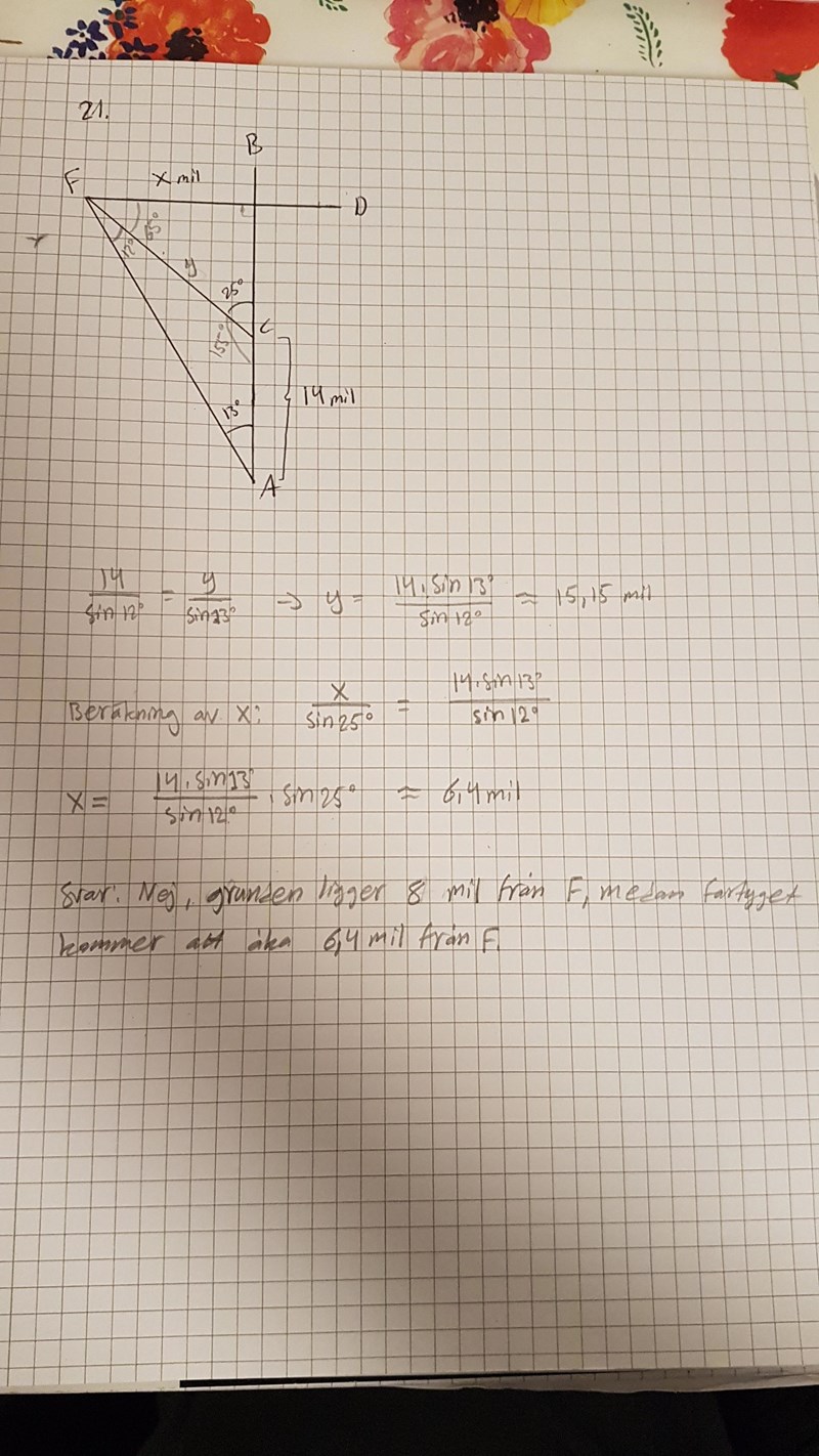 Jag skulle gjort på samma sätt och fått samma resultat. Det enda jag har att anmärka på är att du skriver mil istället för sjömil.