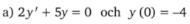De har givit dig diffekvationen 2y'+5y=0, men precis som man måste se till att det är en "osynlig etta" framför x2-termen innan man använder pq-formeln, så måste man se till att det är en "osynlig etta" framför den högsta derivatan, när man läser en diffekvation. Dela alltså båda led med 2 så får du fram rätt funktion.