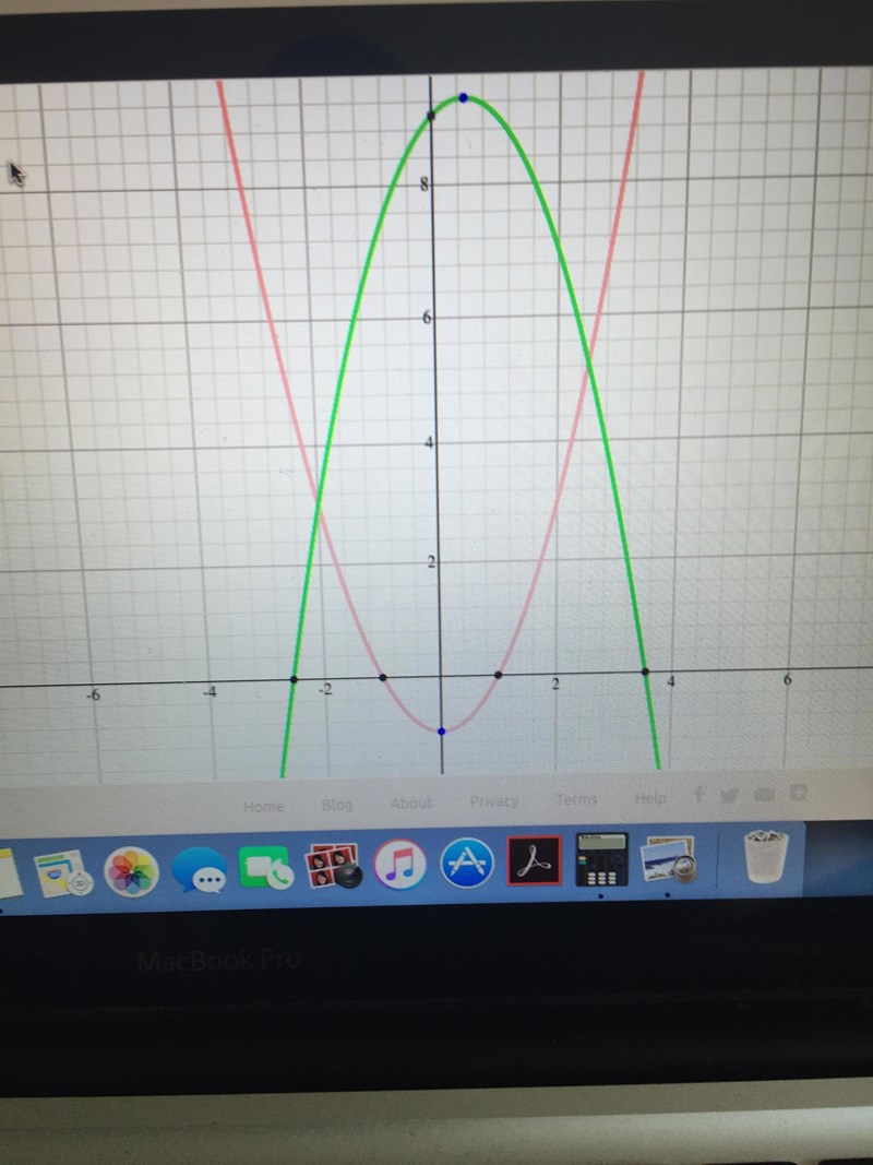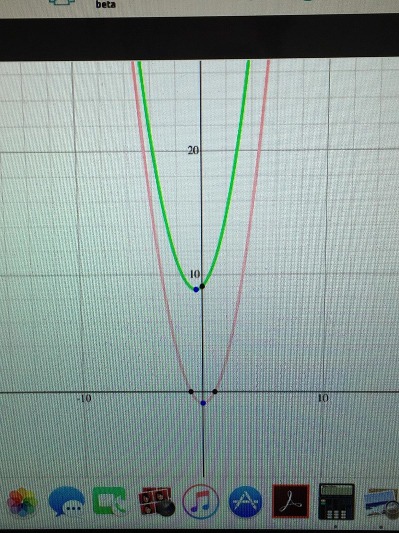 Den gröna kurvan är fel - du har ritat in y = x + x^2 + 9 men det skall vara y = x - x^2 + 9.