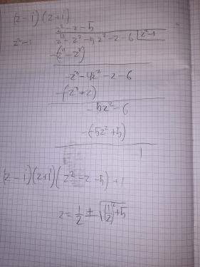 Du känner till två rötter, x=i och vilken mer? Vad kan vi säga om p(z) om det är reella koefficienter och en rot är imaginär?