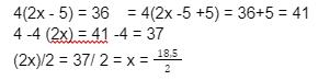 4(2x - 5) = 364/4(2x - 5)= 36/4
