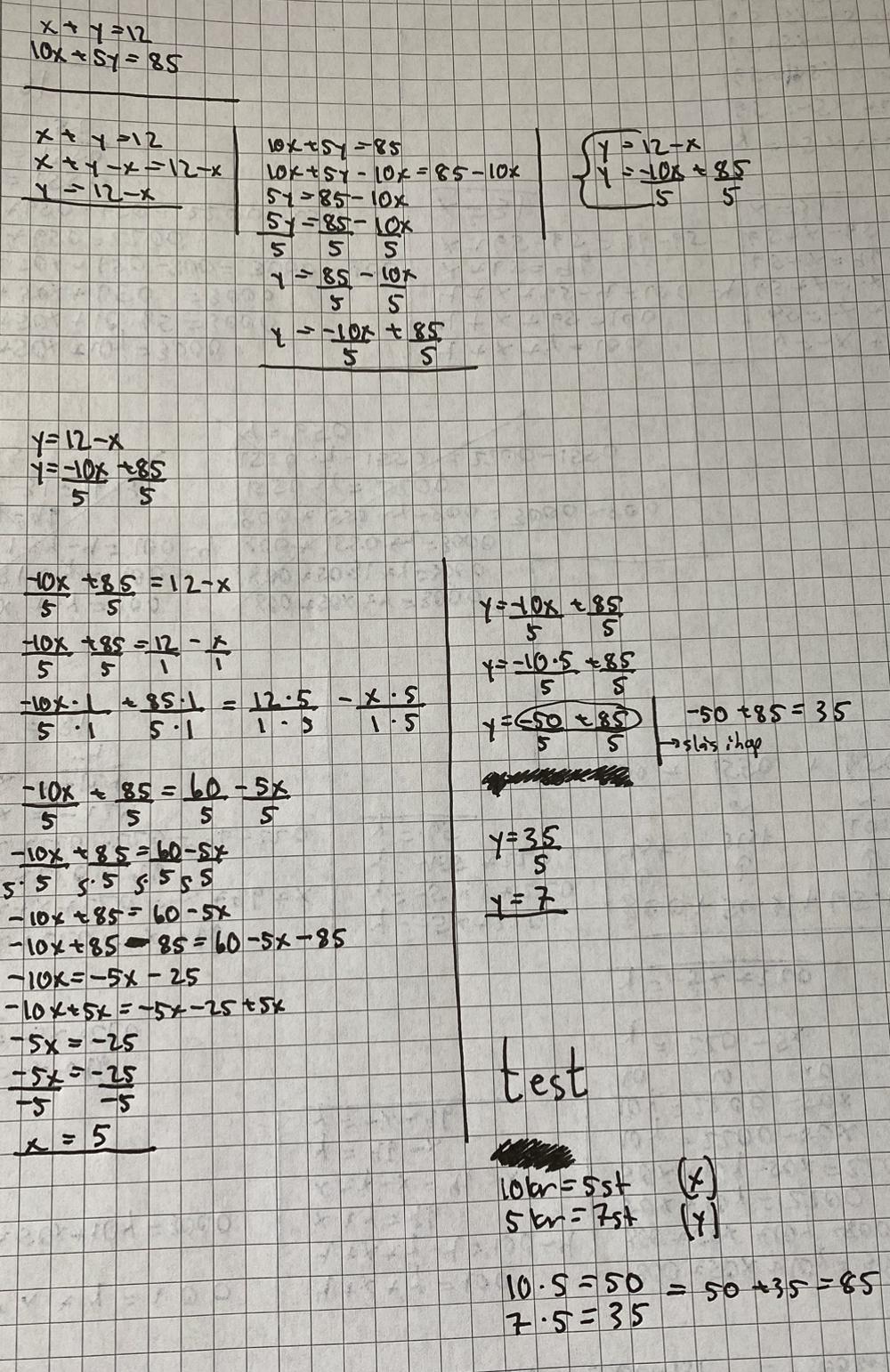 Jag har 12 st mynt i tior och femmor, om 10kr är x och 5kr är y, så är x+y=12st