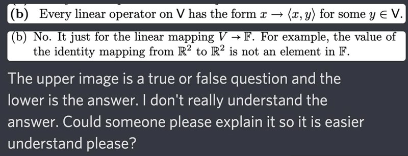 Avbildningen är en linjär operator från V till V. Eftersom dess värdemängd är V och därför inte en delmängd av , så kan den omöjligen var på den ovan givna formen. Ett undantag skulle förstås vara om V = , men det är ju inte så vanligt.