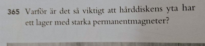 Jag tror att de menar varför det är viktigt att magneterna är starka och permanenta, inte varför de är magneter. Du har tänkt rätt, men kommit fram till fel. Magneterna i dagens hårddiskar är extremt starka, vilket är viktigt eftersom att de inte ska påverkas av yttre magnetfält.