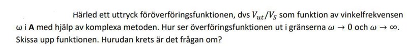 Härled ett utryck för överföringsfunktionen med hjälp av komplexa metoden