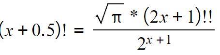 Något annat som borde noteras är att formeln för (x+1/2)! inte fungerar för alla heltal som anges i uppgiften. Endast de naturliga talen.