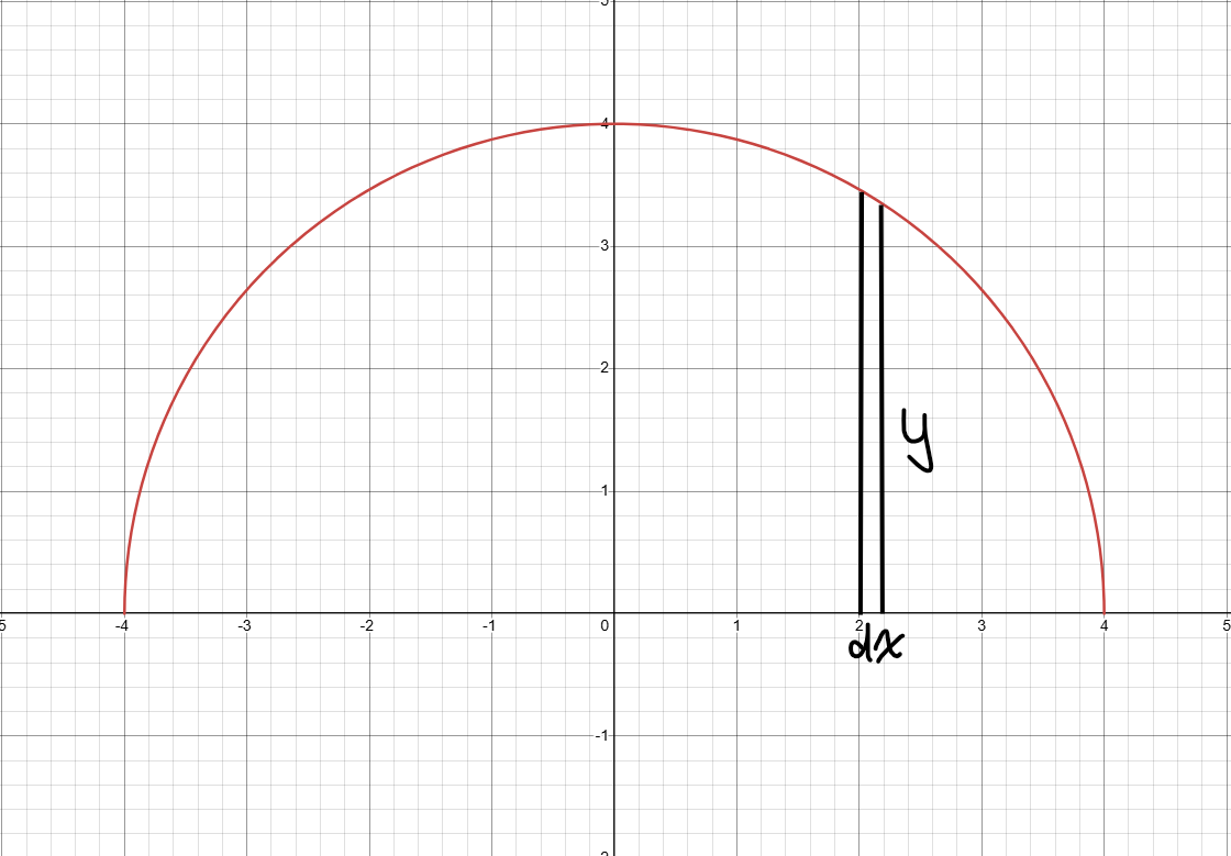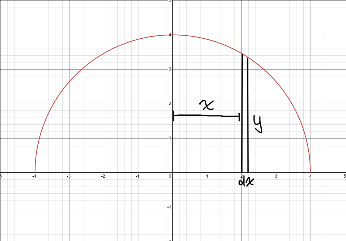 Det är det du skall integrera längs x-axeln, från -r till r.