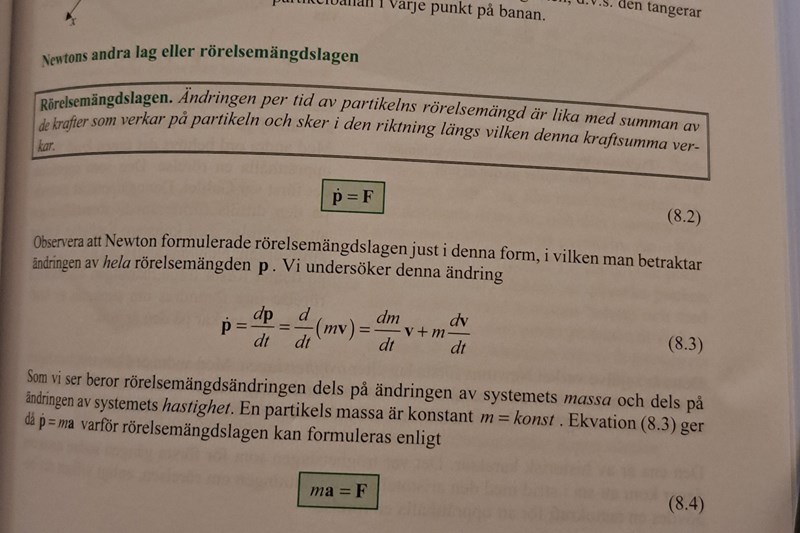 PATENTERAMERA skrev:Hur definieras rörelsemängdslagen och kraftekvationen i er bok?