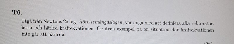 Härled kraftekvationen och exempel på en situation där härledningen inte går att härleda