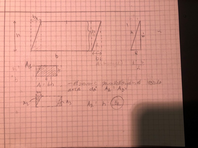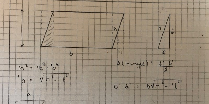 jag har precis börjat en civilutbildning och är ganska förvirrad. Försöker nu lösa problemet "Härled en formel för arean av en parallellogram där en sida är b och avståndet från denna sida till motstående är h".
