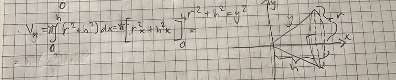 6. Varje skivas volym är alltså πrs2dx\pi{r_s}^2\operatorname dx