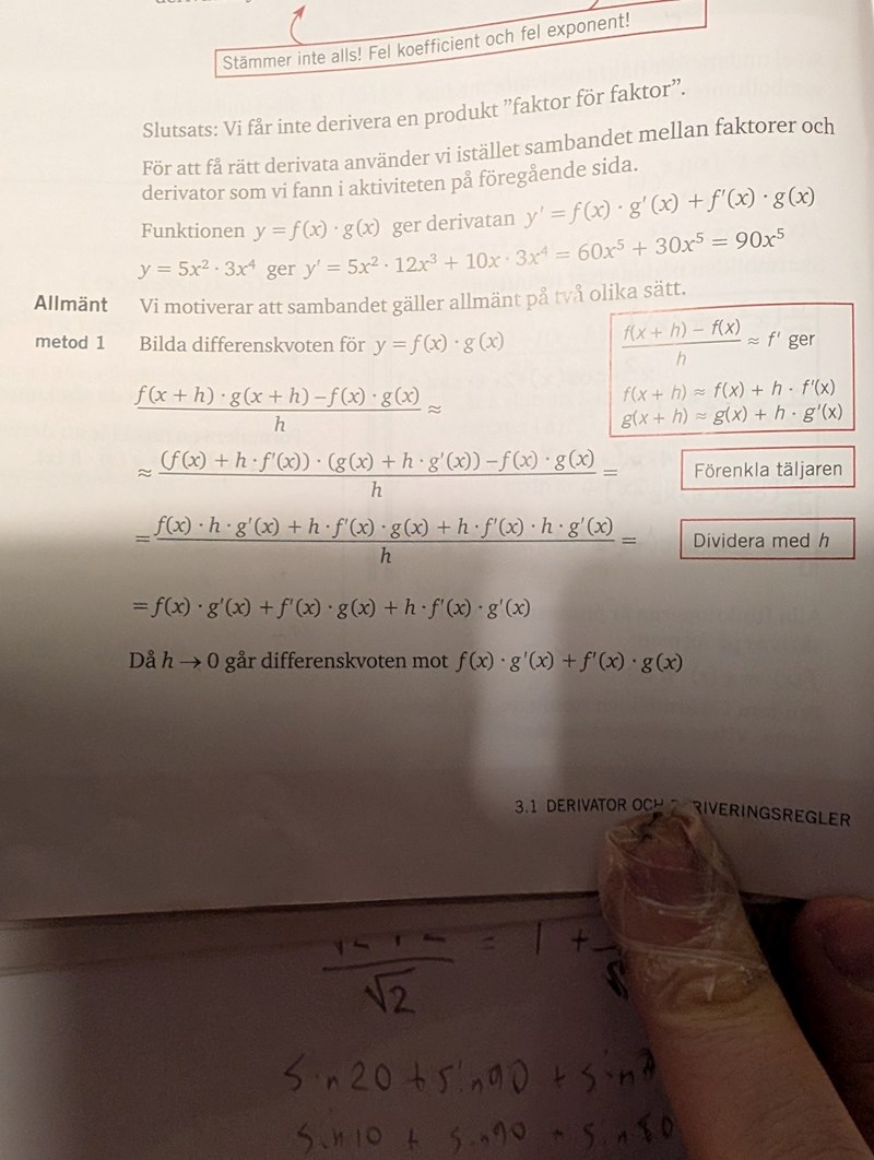 Så förstår jag inte vad som händer när de härleder formeln. Man gör en massa steg mellan och jag förstår inte vad man gör för någonting. Tänkte om någon orkade förklara.