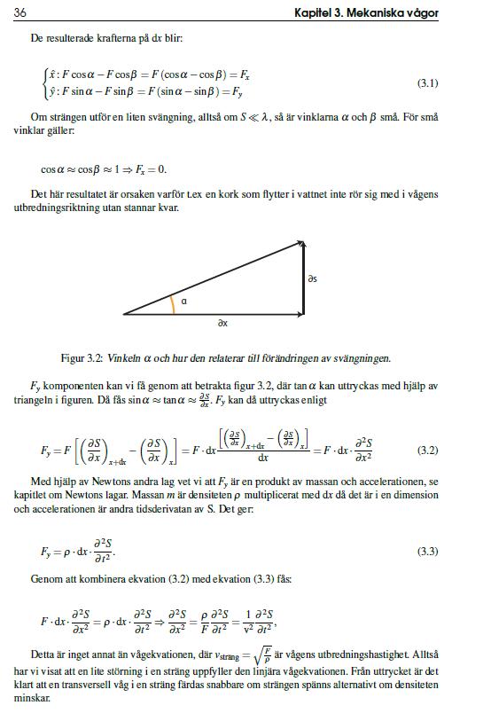 Första frågan gäller formeln för Fy (ekvation (3.2)). Känns lite oklart hur vi i den näst sista likheten har en förstaderivata i täljaren och i nästa likheten en andraderivata. Ska man helt enkelt tänka att man multiplicerar nämnaren med dx och därför får vi en andraderivata