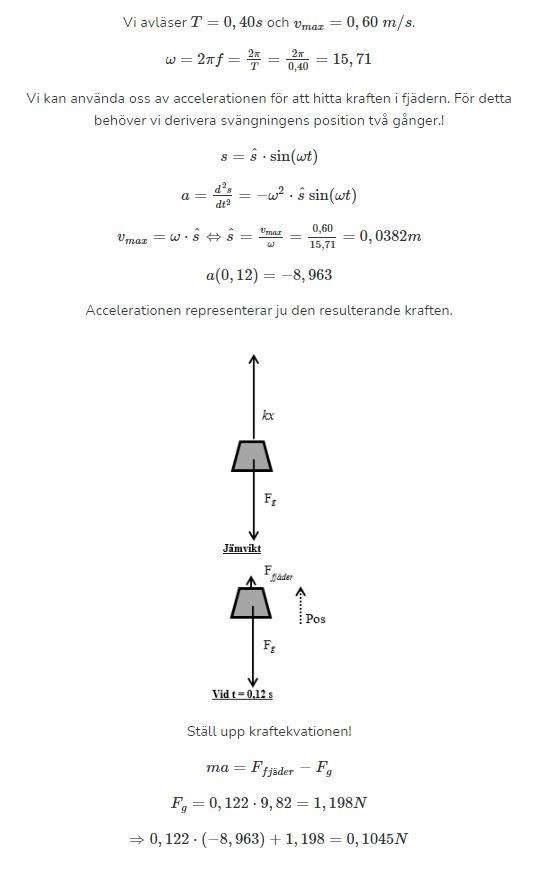 Varför har de ställt upp kraftekvationen som Ffjäder - Fg = ma ?