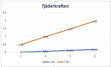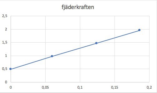 Sen skulle jag även göra ett diagram där det stod ”Värdet på linjens lutning är ett närmevärde på fjäderkonstanten k. Med hjälp av dina kunskaper i matematik och ditt diagram ska du räkna ut k”