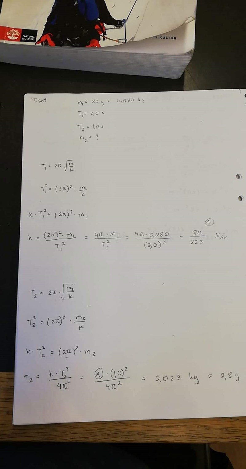 Du glömde 2-an i "π2". Men du behövde egentligen inte räkna ut fjäderkonstanten.