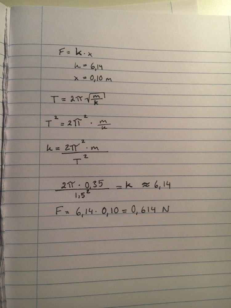 Hur ska jag veta vad T² är? Är det svängningstiden 1,5 s? Eller är det mindre eftersom x= 0,1 0 och inte 0,15?
