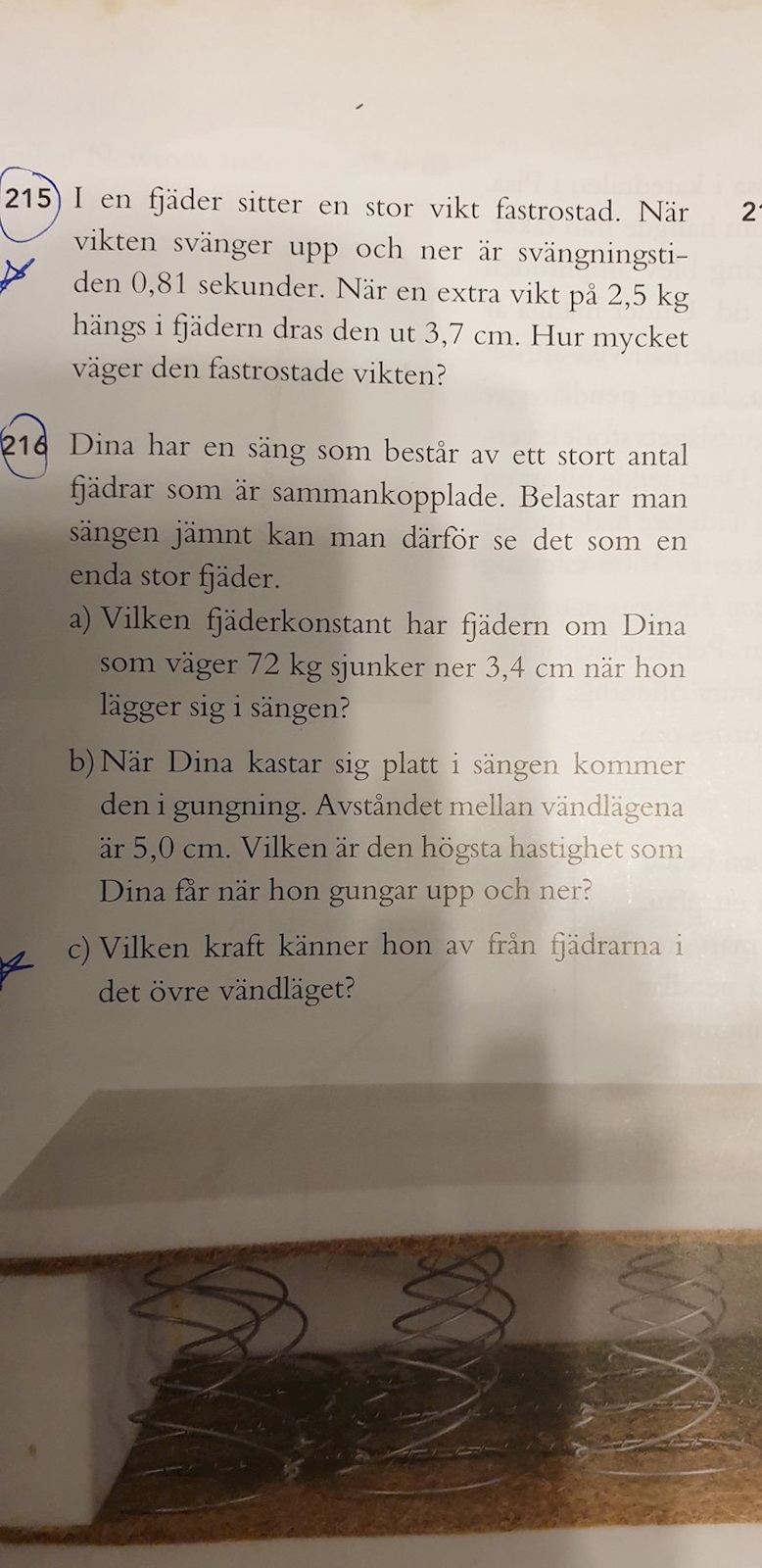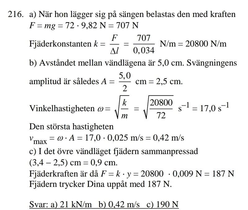 Fjäderkonstanten är 20800. Jag hänger inte riktigt med vad som händer med amplituden. Se facit