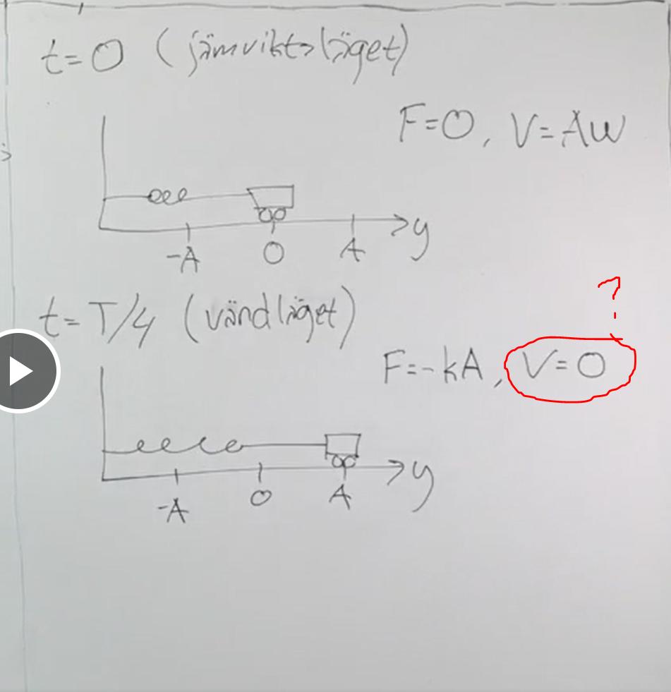 Varför är hastigheten 0 här vid vändläget, alltså när t=T/4 ?