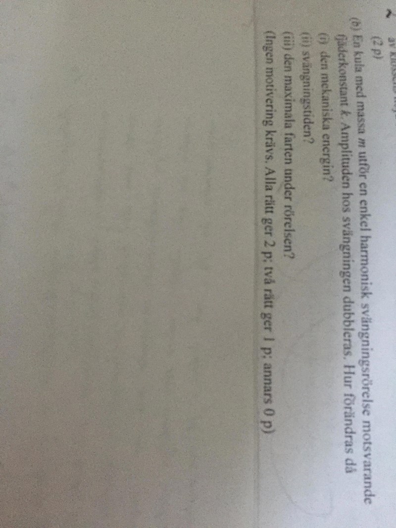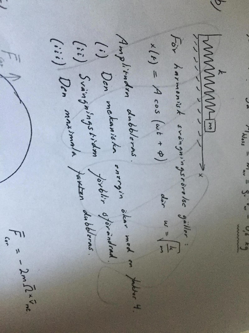 iii) En harmonisk svängning (utan fasförskjutning och krusiduller) kan tecknas . Deriverar vi två gånger med avseende på tiden får vi .