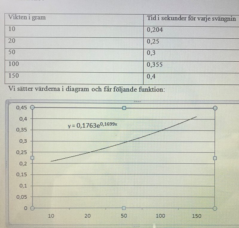 vi har en potintial fuktionen mellan massa och sväning tid , denna funktion är 0,1699x. skulle behöva hjälp att förklara vad betyder värderna i funktionen( 0,1763 , 0,1699).