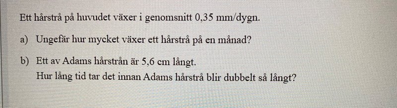Vad fick du fram på a-frågan? Hur långt växer ett hårstrå på en månad?