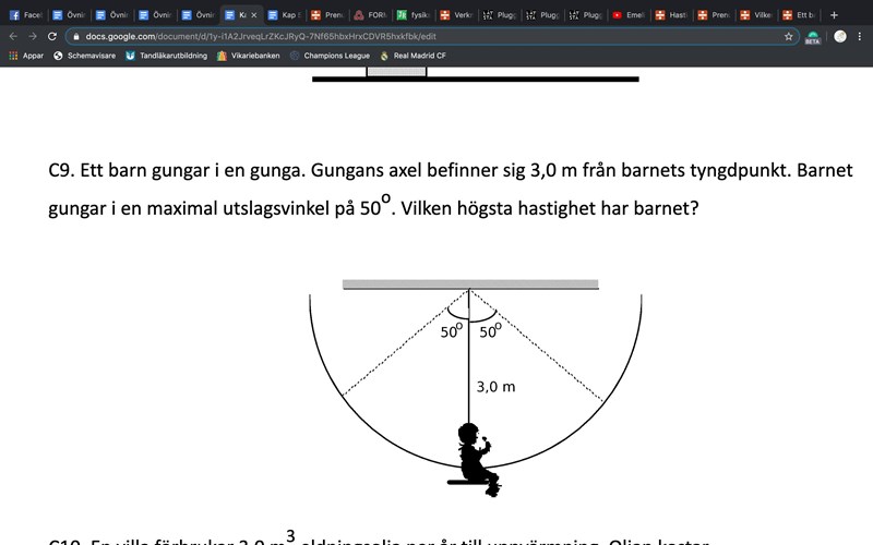 h i formeln är den höjd som omvandlats från lägesenergi till rörelseenergi. Alltså skillnaden i höjd från högsta punkten till nuvarande punkten. Vad den skillnaden blir får du testa att räkna ut själv, men ja det kan nog gå åt lite trigonometri :)