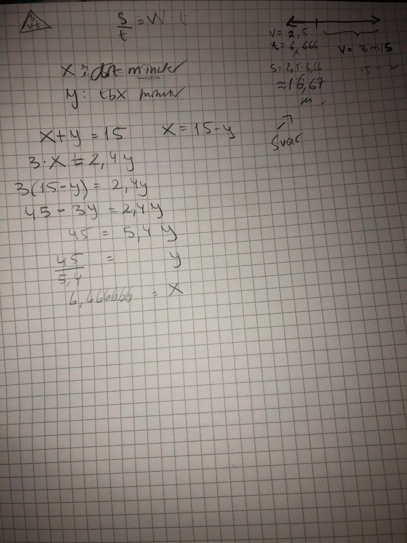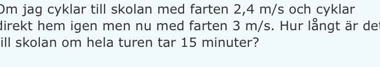 Tänk på att hastigheterna är givna i meter per sekund, men tiden är given i minuter. Du behöver göra om tiden till sekunder.