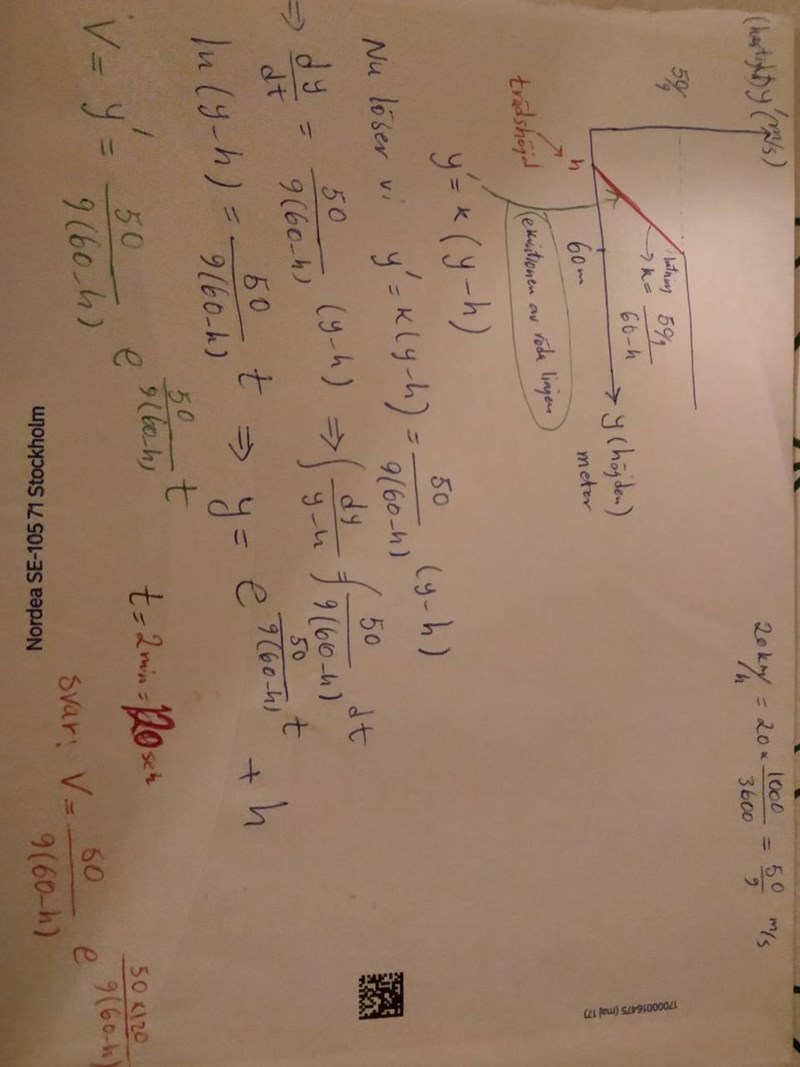 60 är höjd y och y kan skrivas som y = c*e ^kx