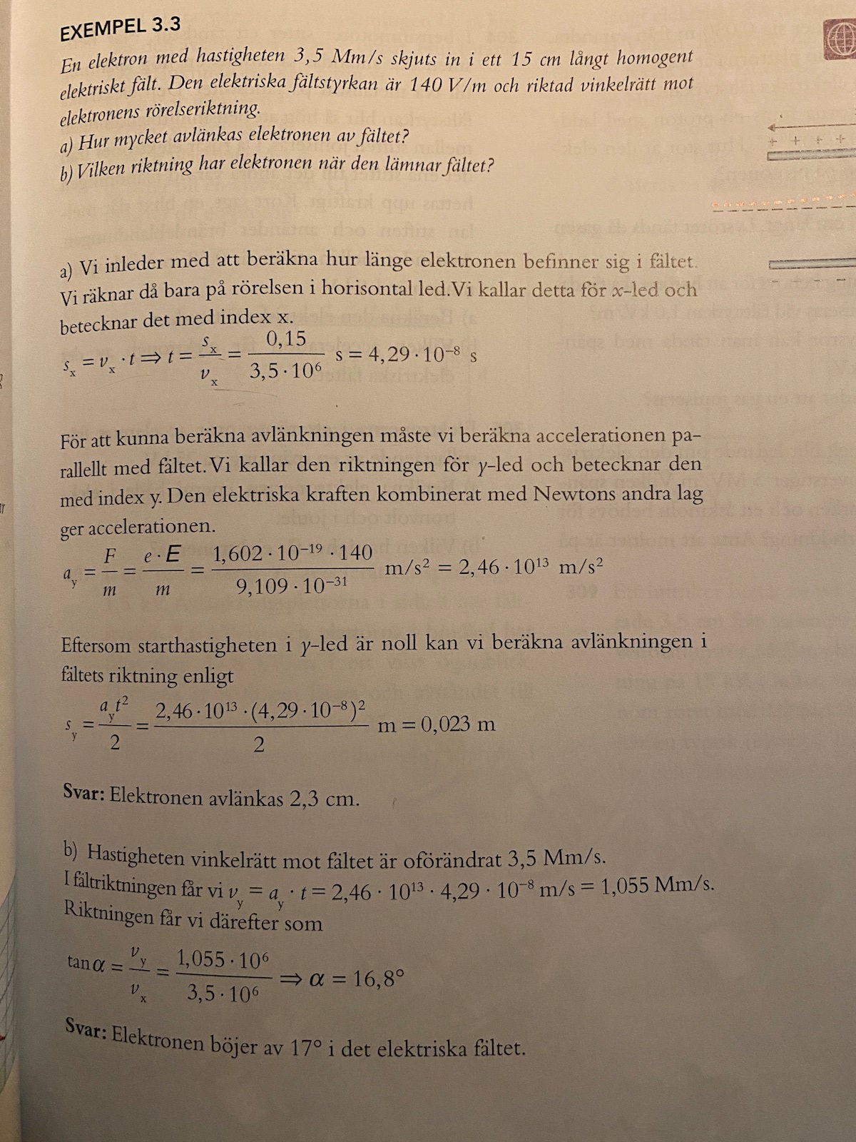 "En elektron med hastigheten 3,5Mm/s skjuts in ..."