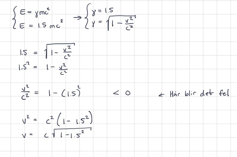 Hastighet hos partikel, 1.5mc^2, titta på min uträkning snälla