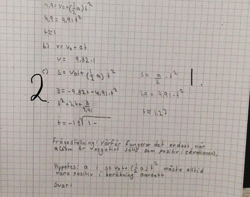 a måste vara negativt eftersom a beskriver accelerationen utav stenen som faller. Men trots det så ger uträkningen rätt svar endast när a skrivs som positiv.