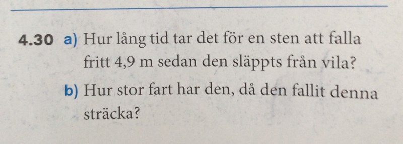 Har svårt att lösa uppgift c) som lyder, Hur lång tid tar det för stenen att falla ytterligare 3m?