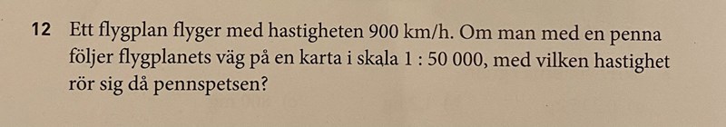 Nu vet du hur långt pennspetsen måste röra sig på en timme. Alltså en sträcka per timme. Alltså en hastighet.