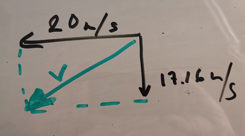 Ture skrev:Man frågar efter bilens hastighet, den rör sig nedåt med 17,16 m/s och framåt ned 20 m/s.