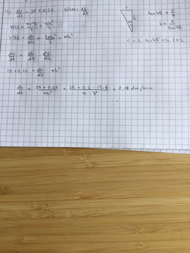 Hur hade jag ställt upp dV/dh om r inte var lika med h?
