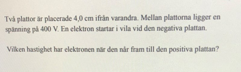 Hastigheten för elektroner mellan 2 plattor
