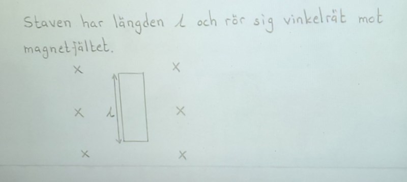 Det induceras en spänning om staven rör sig vinkelrätt mot magnetfältet.