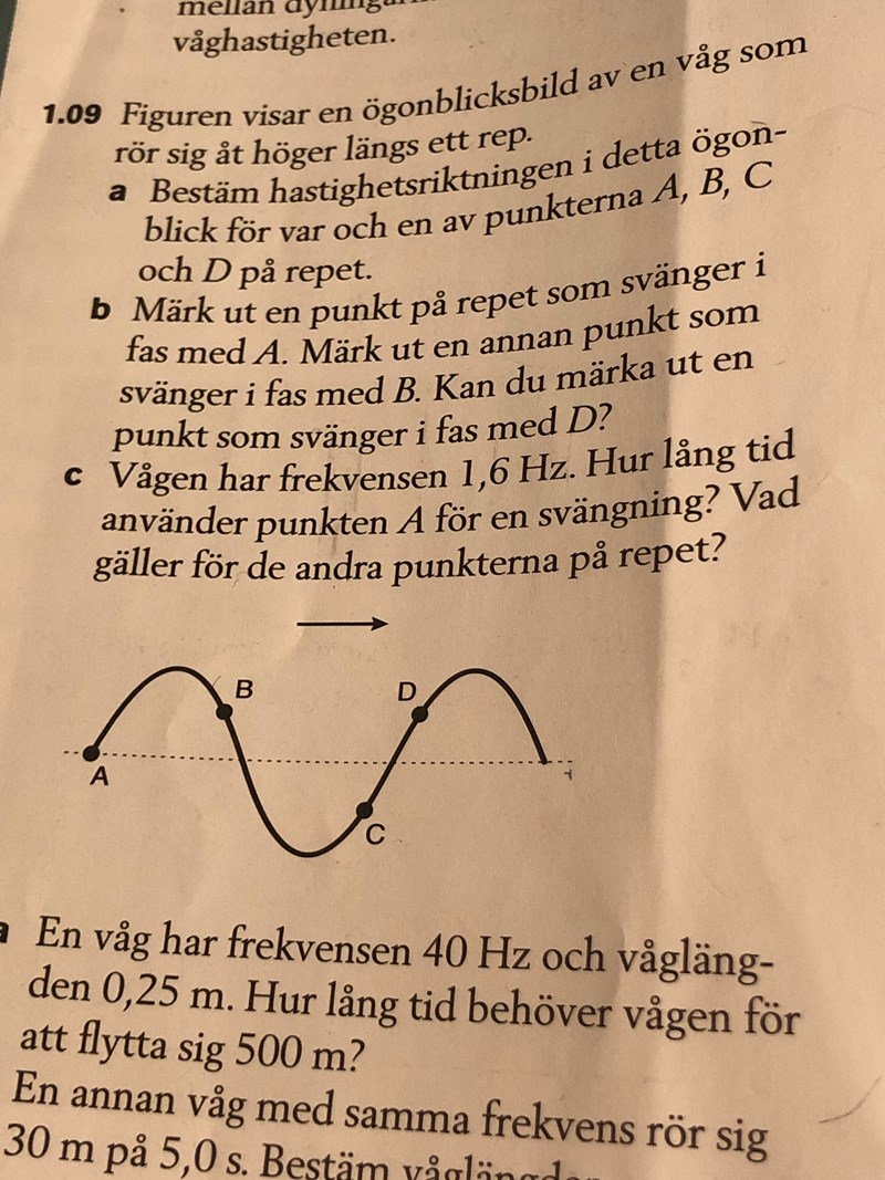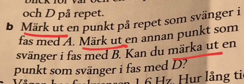 På b-uppgiften så betyder "i fas med" att de båda punkterna guppar upp och ner på exakt samma sätt, dvs när den ena rör sig uppåt eller nedåt gör även den andra det.