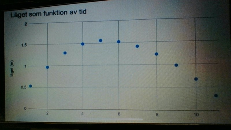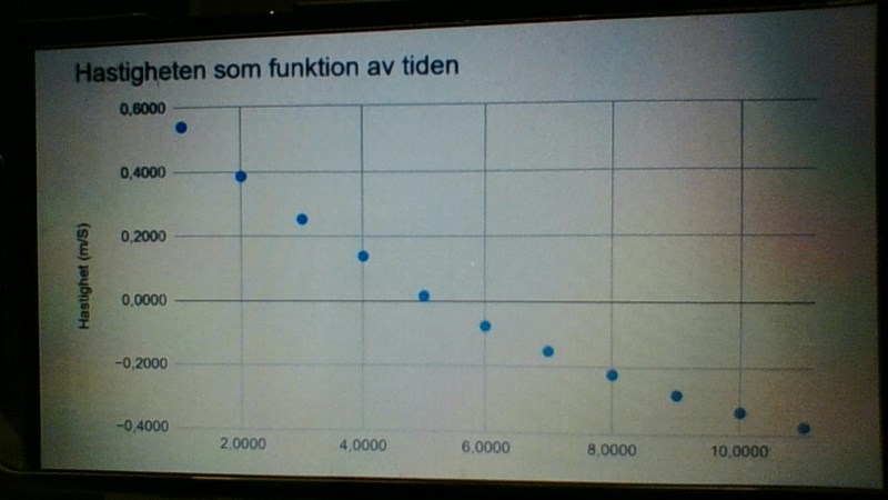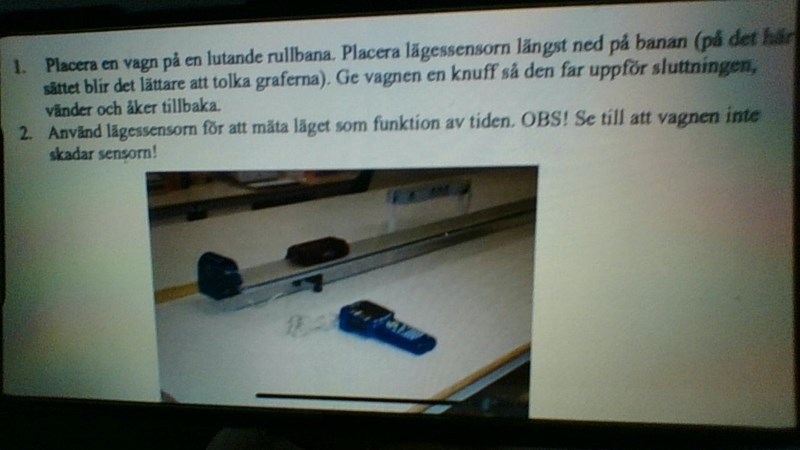 Jag har fastnat på en uppgift där uppgiften vill att jag ska rita st-grafen och bestämma hastigheten för ett vagn som rullar på ett lutande bana. Vagnen går fram och kommer tillbaka, det har jag gjort och på läge-tids-grafen fick jag en andragradskurva medan när jag ritar det på ett hastighets-tid -grafen så det låter inte helt en rätt linje. Utan när vagnen går fram så vt-grafen låter en rätt linje men så fort vagnen vänder sig linjen är inte längre en rätt linje samt hastigheten blir negativt. Kan någon förklara att varför vt-grafen blev inte ett rätt linje. Eftersom jag vet att lutningen på st-grafen motsvarar hastigheten men eftersom linjen på st-grafen var inte ett rätt linje så räknade jag mommentahastigheten vid olika tidpunkter så fick jag hastigheten. men vet jag inte att hastigheten är konstant eller inte jämfört med att vagnen på st-grafen.