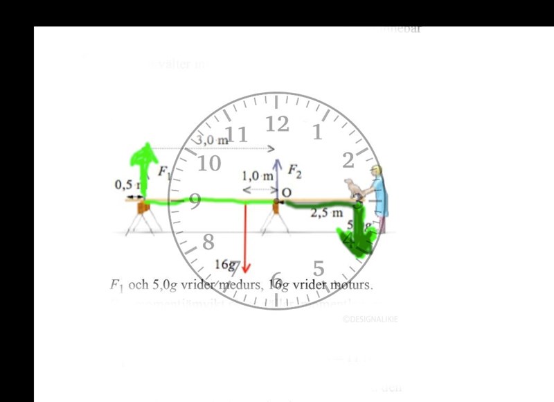 Hur bestämmer man att höger och vänster sidan i jämviktsekvationen dvs vilka krafter som verkar på varje sida. T.ex antar man att 16g*1.0 är moturs och f1*3.0 + 5.0g*2.5 är medurs. Förstår att 16g*1.0 och 5.0g*2.5 vrider åt olika håll men hur avgör man ifall f1*3.0 också ska vrida åt samma håll som 5.0g*2.5?