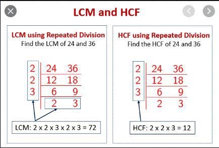 HCF är högsta tal som ingår i både 24 och 36. HCF av 24 och 36 är 12. D.v.s = 24=2*12, 36=3*12