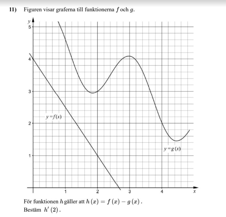Vi vet också att h'(x) = f'(x) - g'(x)