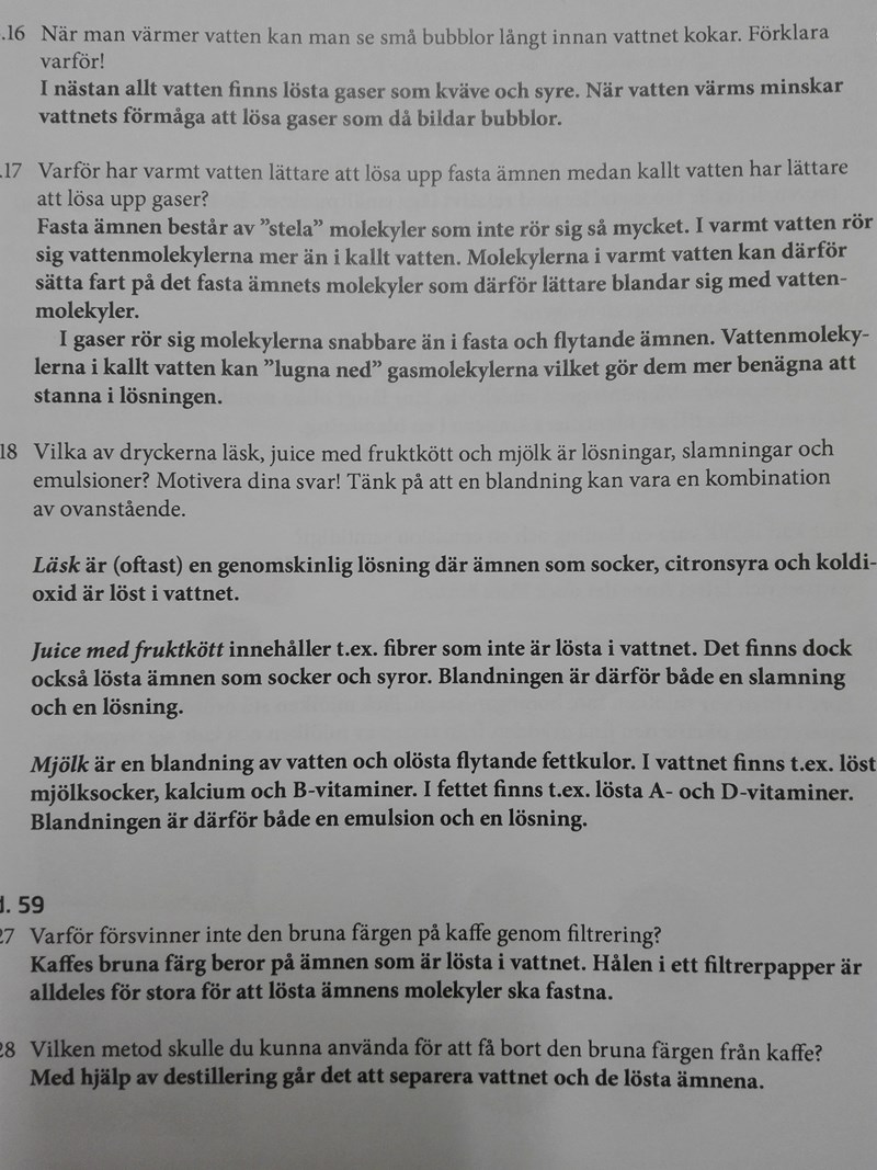 Det var dåliga formuleringar, rent ut sagt felaktiga. Mjölk är inte en lösning - i så fall skulle mjölk vara genomskinlig. Det finns ämnen som är upplösta i vattnet i mjölken, men det betyder inte att mjölken som helhet är en lösning.